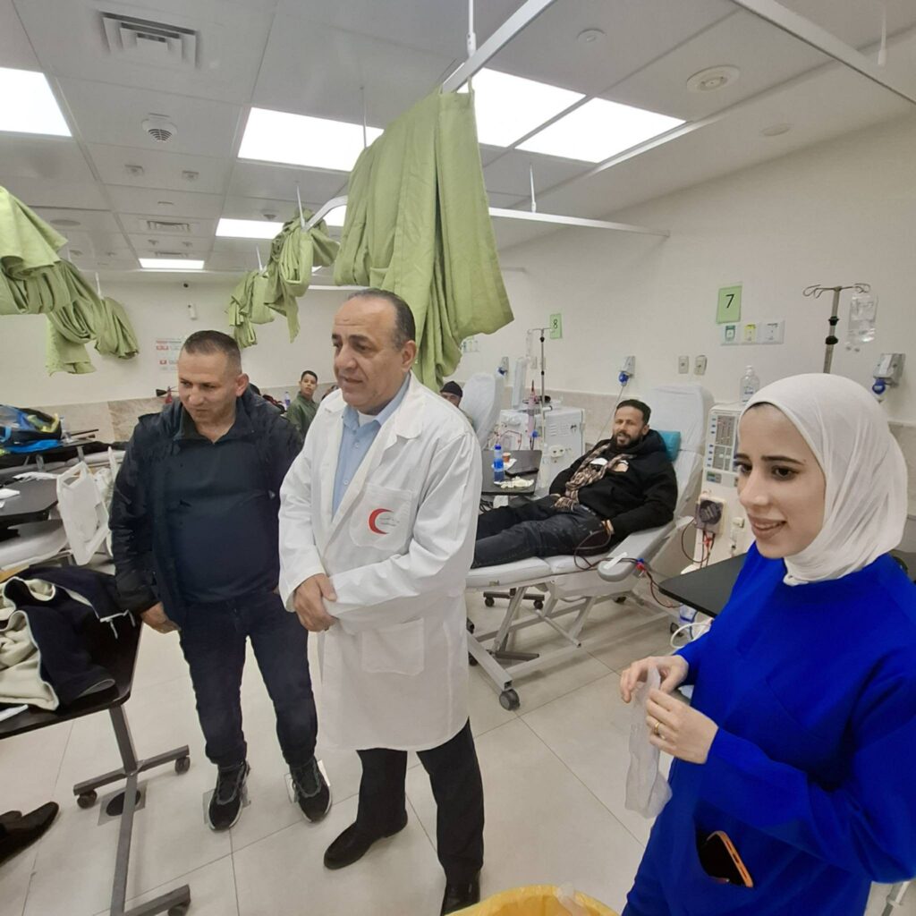 منتصر العناني – قام مدير العلاقات العامة في جمعية الامل لرعاية مرضى الفشل الكلوي اسلام أبو شمعة بزيارة لمدير عام مشفى الشهيد ثابت ثابت الدكتور هيثم شديد ، والتي تأتي ضمن الزيارات المتوالية والشراكة المستدامة حيث رافقه الى قسم الكلى في المشفى بجولة التقوا خلالها مع النزلاء ووقفوا على احتياجاتهم ومطالبهم في القسم ، الدكتور شديد قال نحن نعمل بكل امكانياتنا لاقديم ما هو افضل لنزلاء هذا القسم وسندرس مطالبهم المُحقة واننا في وزارة الصحة لا نتوانى في تقديم اعلى الخدمات الصحية والطبية لهذا القسم وأقسام المشفى بالكامل، شاكراً دور الجمعية على المساهمة الدائمة في تقديم ادوية ومستلزمات للتزلاء ونعمل معاً على الدوام لتوفير الأدوية وفق ما هو متاح لنا في ظل ظروف نعيشها تعلمون ما هي ، اسلام ابو شمعة مدير العلاقات في الجمعية شكر الدكتور هيثم شديد وطواقم المشفى على اهتمامهم وايلاء اولويات لهذا القسم للنزلاء وأهاليهم ايضاً ، مشيداً بالتعاون ما بين الجمعية وادارة المشفى ونحاول على الدوام المساهمة في تقديم ما يمكن تقديمه للمرضى وهو قسم يحتاج الكثير ، وان هناك ادوية لا توجد في وزارة الصحة نتيجةً الوضع القائم نحاول دوماً قدر الإمكان توفيرها وتقديمها لهؤلاء من المرضى ، واختتم ابو شمعة بأننا با نتوقف على الدوام في خدمة مرضانا وتقديم الواجب اتجاههم والتعاون البناء والوثيق مع ادارة المشفى بدون تقصير ، شاكراً الدكتور هيثم على جولته الدائمة في قسم مرضى الفشل الكلوي في صورة تُرفع من خلالها معنويات المرضى بشمل دائم .