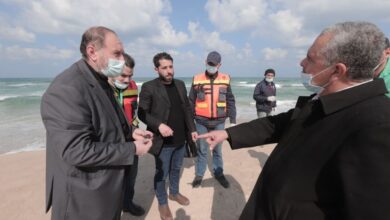 بالصور: التسرب النفطي يصل شواطئ غزة