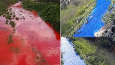 اللون الأحمر يلون مياه أحد الأودية برام الله.. ما السبب؟