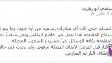 القسام: نرفض مبادرة وقف اطلاق النار وهي “ركوع وخنوع”
