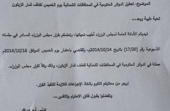 عطلة رسمية يوم الخميس القادم في الدوائر الحكومية