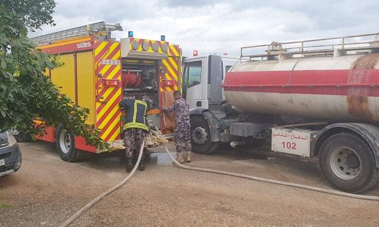 الدفاع المدني ينقذ حظيرة أغنام ويخمد حريق بالات قش شرق جنين