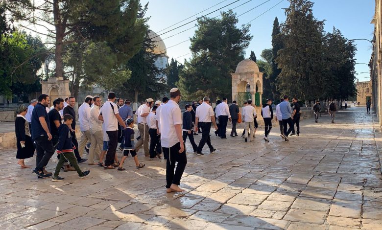 وأفاد مراسلنا، بأن 56 مستوطنا و52 طالبا يهوديا اقتحموا الأقصى من جهة باب المغاربة، وبحراسة مشددة من شرطة الاحتلال، ونفذوا جولة استفزازية في باحاته، قبل أن يغادروه من جهة باب السلسلة.