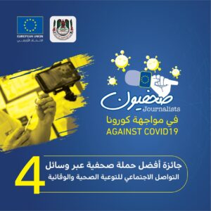4. جائزة أفضل حملة صحفية عبر وسائل التواصل الاجتماعي للتوعية الصحية والوقائية.