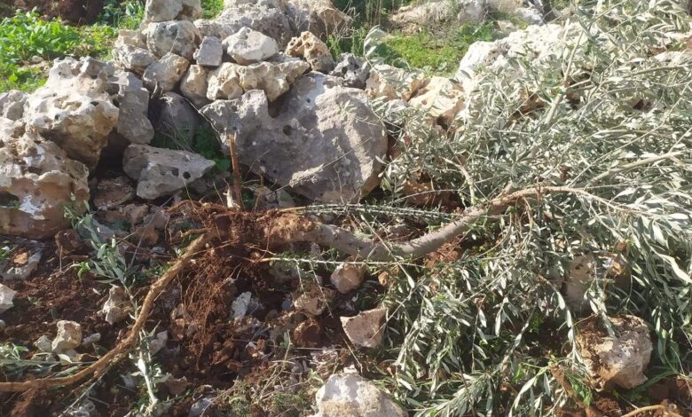 مستوطنون يقتلعون 13 شجرة زيتون من اراضي بلدة حارس