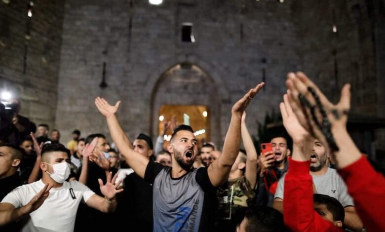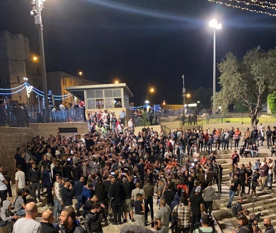 وأدى مساء اليوم، آلاف المواطنين صلاتي العشاء والتراويح في رحاب المسجد الأقصى المبارك، وعند الانتهاء منها تجمهروا عند باب العامود، مرددين الهتافات والشعارات الوطنية.