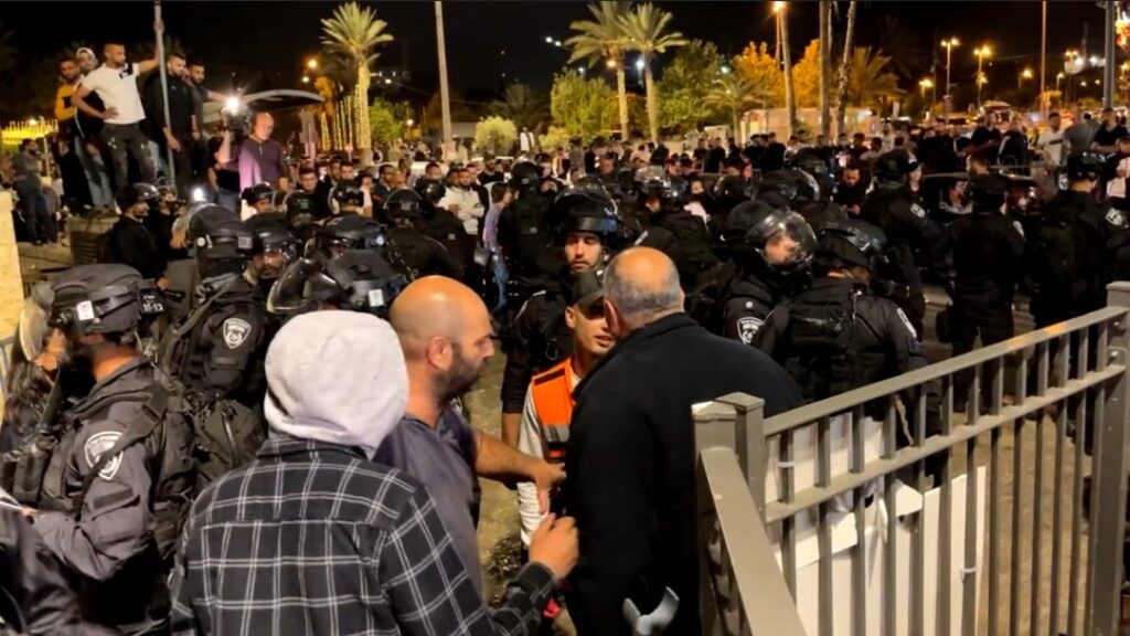 اعتدت قوات كبيرة من جيش الاحتلال، الليلة، على الشبان المتواجدين في باحات باب العامود بالقدس المحتلة.