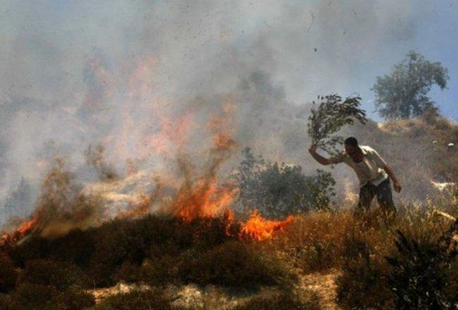 مستوطنون يحاولون اختطاف طفل ويضرمون النار بالأراضي الزراعية في جالود