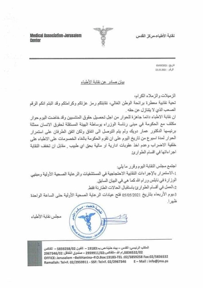 اهم ما جاء في بيان نقابة الأطباء: