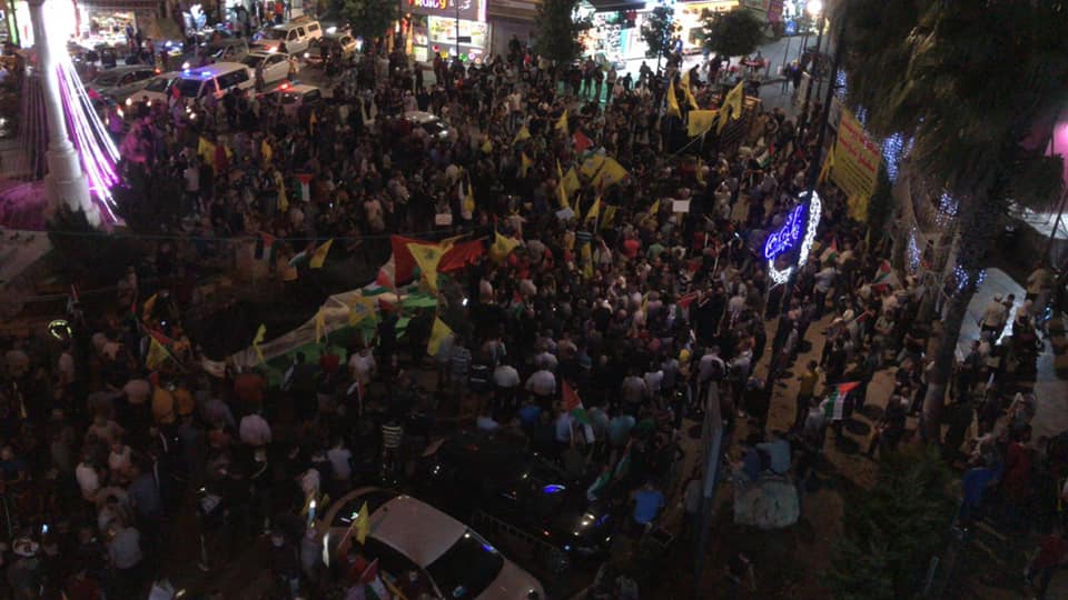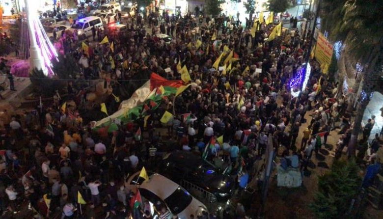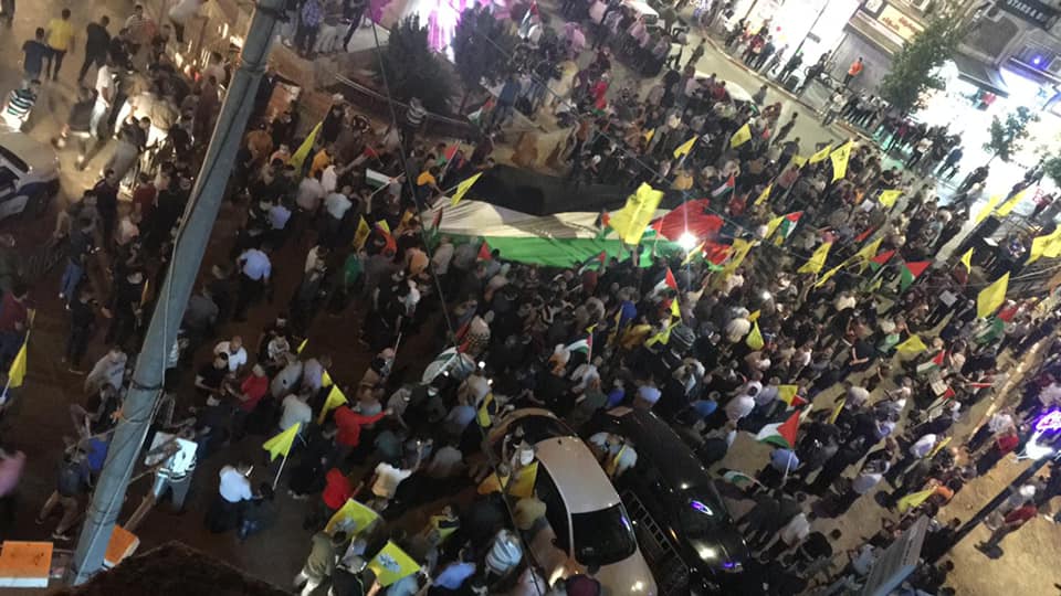 وبمشاركة شخصيات وطنية، وممثلون عن الفصائل، شهد دوار المنارة، مظاهرة حاشدة، رفعت خلالها أعلام فلسطين، ورايات الفصائل، على وقع الأغاني الوطنية والهتافات، التي أكدت على أنّ القدس هي جوهر القضية الفلسطينية، ونصرةً لحي الشيخ الذي يتعرض للتطهير العرقي.