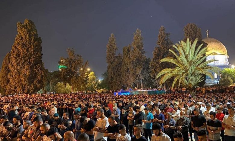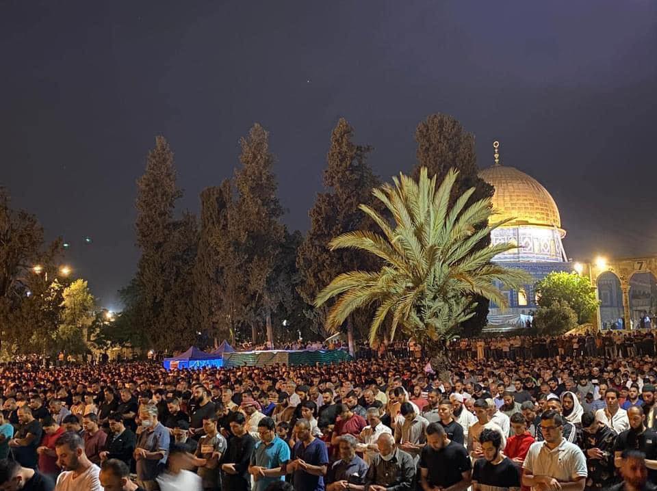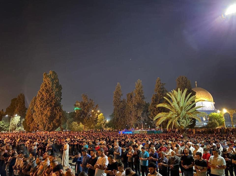 أدى حوالي 90 الف فلسطيني صلاة العشاء والتروايح في باحات المسجد الاقصى المبارك حسب مدير عام أوقاف القدس الشيخ عزام الخطيب