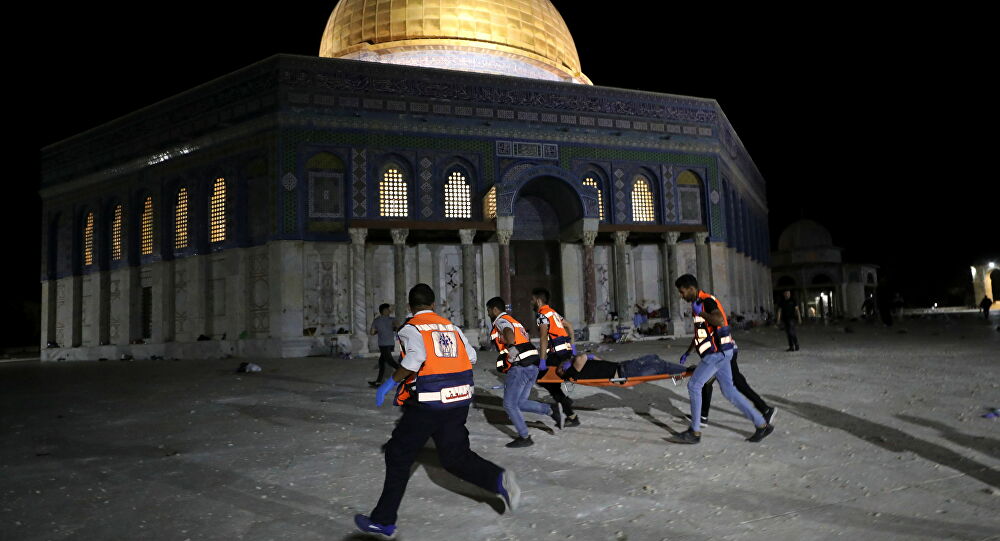 وأفادت مصادر محلية بأن قوات الاحتلال اقتحمت باحات المسجد من جهة باب المغاربة، ما أدى لتجدد المواجهات، أطلق خلالها جنود الاحتلال الرصاص وقنابل الصوت والغاز المسيل للدموع صوب المصلين الخارجين من الأقصى عبر باب الأسباط، دون أن يبلغ عن إصابات.