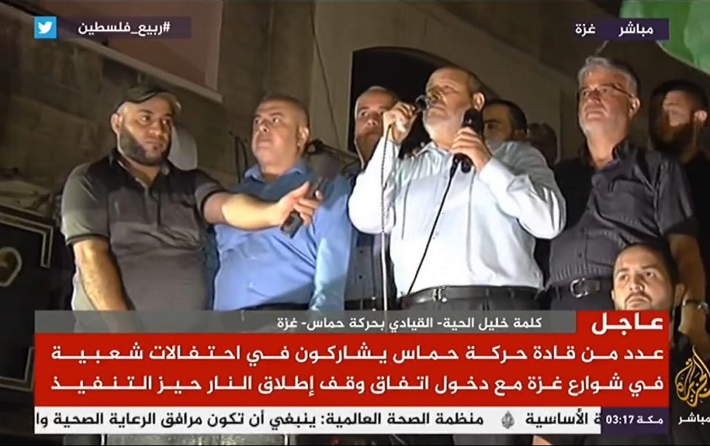 واعتبر الحية في كلمة له خلال مسيرة خرجت عقب اعلان التهدئة الساعة الثانية فجرًا في شارع الوحدة المدمر بفعل العدوان، إن ما جرى نصر للشعب الفلسطيني بأكلمه، وللمقاومة الراشدة المنتصرةـ، مضيفًا “شعبنا الموحد يعلن النصر على عدونا”.