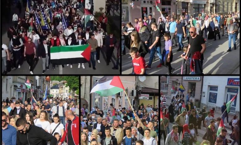 وأعرب مشاركون في مسيرة احتجاجية انطلقت في شوارع مدينة ترافنيك بالبوسنة عن دعمهم للشعب الفلسطيني، نظمتها جمعية شبيبة حزب العمل الديمقراطي وشارك فيها المئات من المواطنين وابناء الجاليات الفلسطينية والعربية.