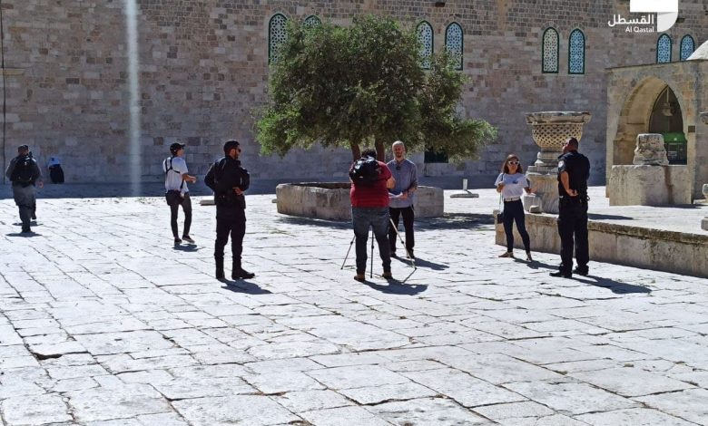 ونقلا عن مصادر محلية، أجرى مستوطنون مقابلات صحفية في باحات الأقصى خلال عملية الاقتحام، في انتهاك صارخ لحرمة الأقصى، واستفزاز لمشاعر المسلمين.