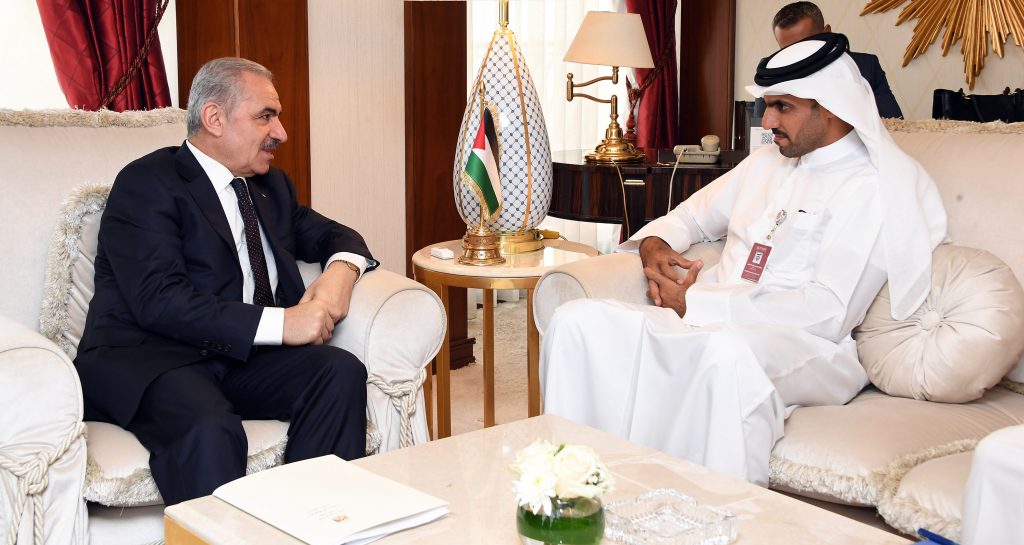 استقبل رئيس الوزراء محمد اشتية، اليوم الاثنين في مقر اقامته بالعاصمة القطرية الدوحة، مدير عام صندوق قطر للتنمية خليفة بن جاسم الكواري، وبحث معه سبل دعم دولة قطر للعديد من المشاريع التنموية في فلسطين، خاصة مشاريع المياه والطاقة في قطاع غزة.