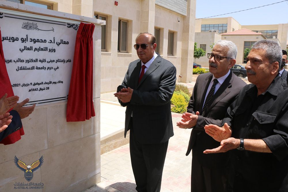 وقال إن تسمية كلية الدراسات العليا باسم الراحل صائب عريقات يجسد روح الوفاء للقامات الوطنية والعلمية، متمنيا للجامعة مزيدا من التقدم.