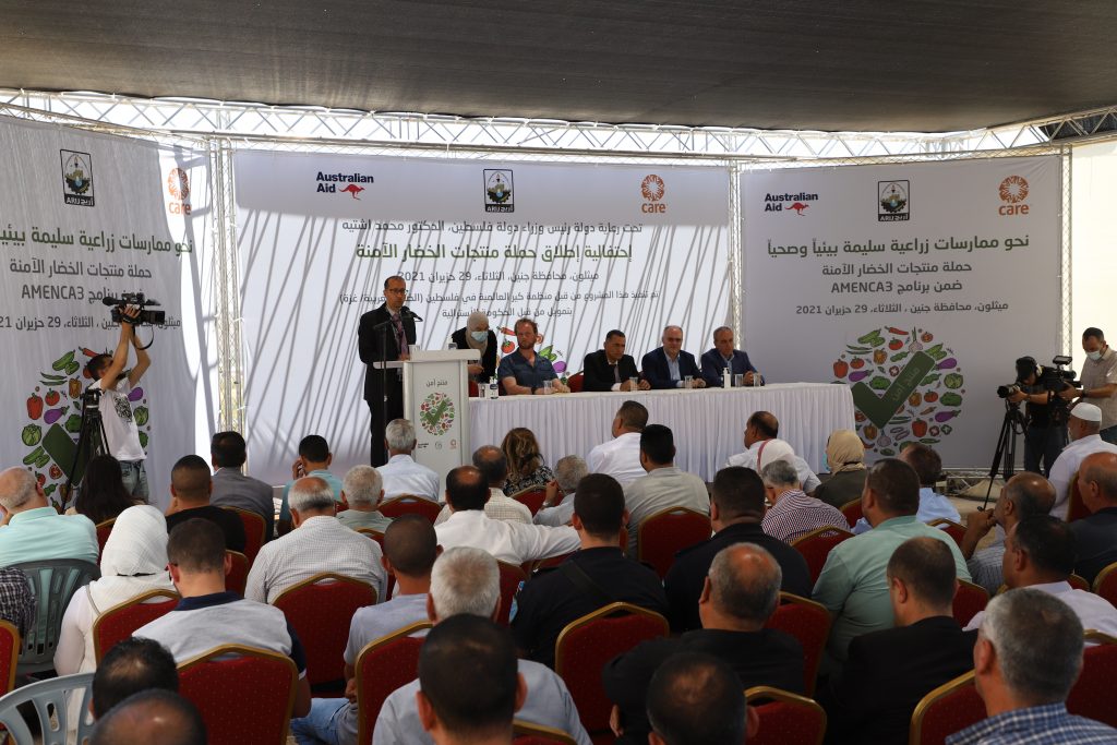 أطلقت منظمة كير العالمية في فلسطين (الضفة الغربية/غزة) وشركائها المحليين والدوليين، اليوم، من بلدة ميثلون بمحافظة جنين، حملة ترويج منتجات الخضار الآمنة، ضمن برنامج AMENCA3 المُمول من الحكومة الأسترالية، وكجزء من مشروع “سوقنا”، والذي يتضمن عدة نشاطات رئيسية مرتبطة بسلسلة القيمة لقطاعي الخضار والأغنام.