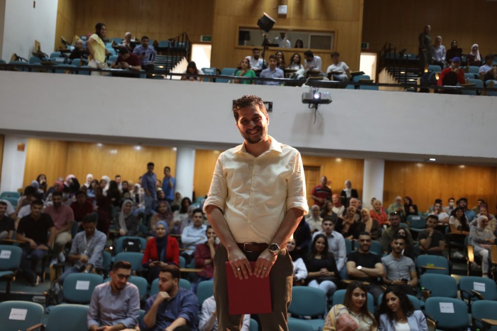 وتاليًا جاء طبيب الجراحة في مستشفى أريحا والأستاذ في كلية الطب البشري في الجامعة د. مصطفى نخالة، وتطرق في حديثه لمواقف إنسانية واجهته أثناء عمله على إنقاذ الجرحى والمصابين على أيدي الاحتلال، موجهًا بذلك رسالة للطلبة حول دورهم الإنساني والوطني وأهمية أن يكونوا أطباء في فلسطين خاصة.