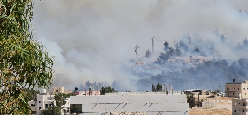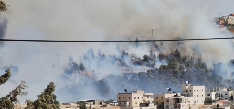 وشوهدت العديد من طواقم الإطفاء الإسرائيلية، تهرع إلى المنطقة لإطفاء الحريق، الذي امتد إلى الجهة الشمالية من المستوطنة.