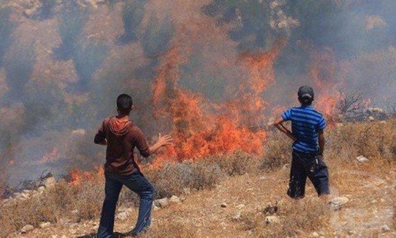 مستوطنون يضرمون النار بعشرات اشجار الزيتون جنوب نابلس