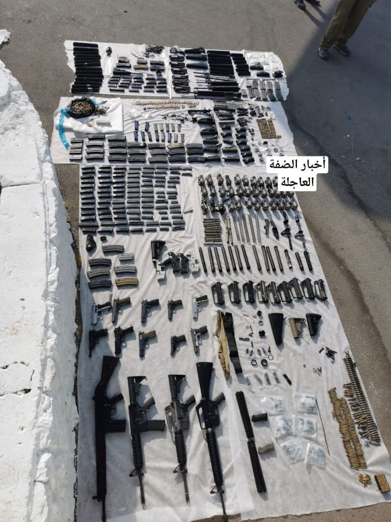وقالت قوات الاحتلال أنها عثرت على عشرة مسدسات وأربع بنادق وأكثر من 130 مخزن أسلحة، وأسلحة أخرى غير مجمعة، ولم تجرِ أي عملية اعتقال حسب صحيفة “تايمز أوف إسرائيل” العبرية.