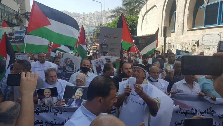 مسيرة في نابلس تطالب باسترداد جثامين الشهداء المحتجزة لدى الاحتلال