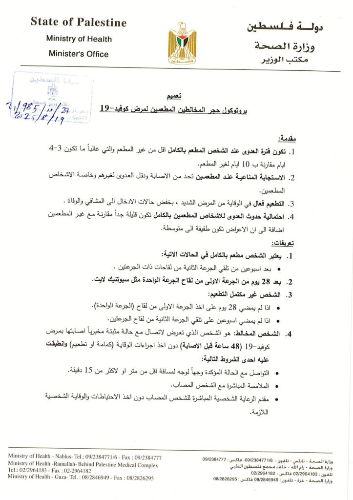 أظهر تعميم بروتوكول لوزارة الصحة بشأن حجر المخالطين المطعمين لمرض کوفید -19، إجراءات جديدة بشأن المصابين بفيروس كورونا ممن أخذوا اللقاح المضاد للفيروس.