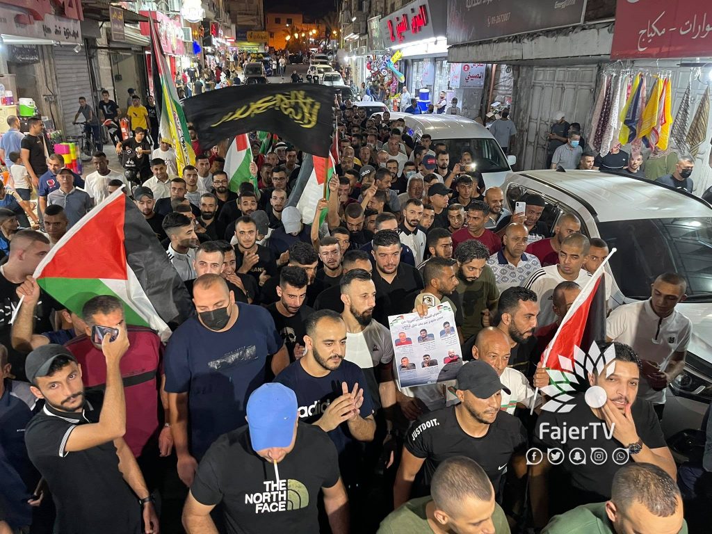 وفي جنين انطلقت مسيرة جماهيرية حاشدة جابت شوارع المدينة وصولًا إلى منزل قائد عملية “انتزاع الحرية” أمير أسرى الجهاد الاسلامي القائد محمود العارضة.