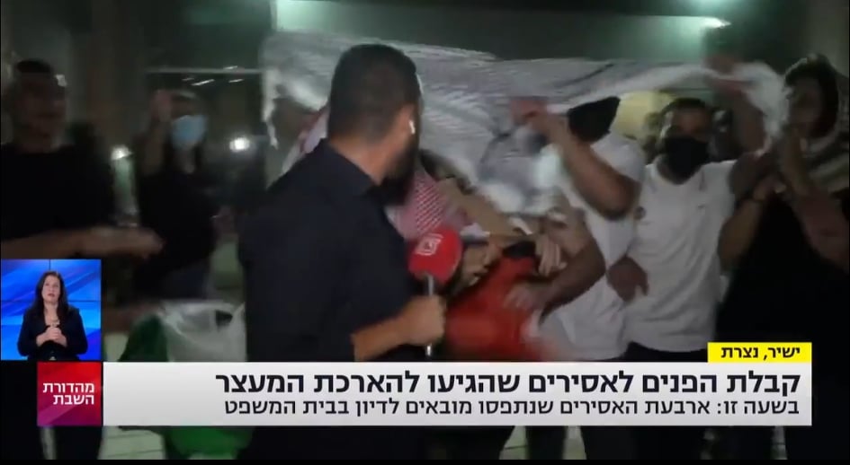 فيديو: حالة من التوتر أمام محكمة الناصرة وسط هتافات مؤيدة للأسرى Muhammad Qubbaj 4 سنوات ago https://alfajertv.com/wp-content/uploads/2021/09/כתב_חדשות_13_עלי_מוגרבי_הותקף_מחוץ_לבית_המשפט_עי_תומכים_במחבלים.mp4