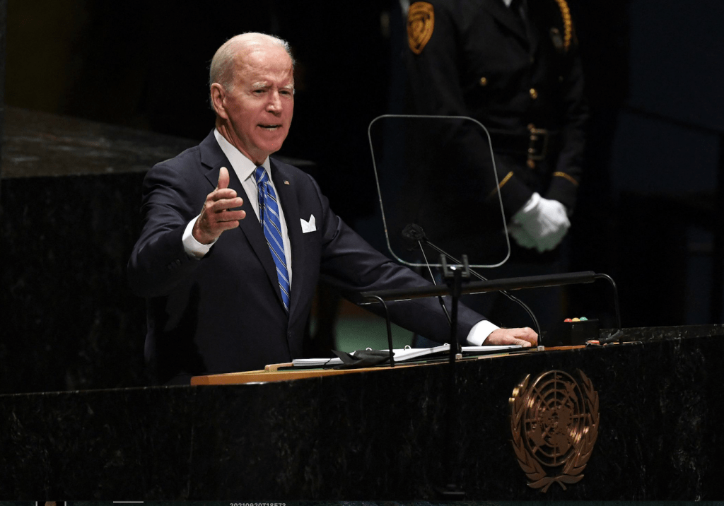 تحدث الرئيس الأميركي، جو بايدن، في خطاب ألقاه أمام الجمعية العامة للأمم المتحدة، اليوم الثلاثاء، عن العودة الأميركية المرتقبة إلى الاتفاق النووي مع إيران والمواجهة مع الصين والانسحاب من أفغانستان، كما بيّن الإستراتيجية الخارجية التي ستتبعها واشنطن خلال الفترة المتبقة من ولايته، فيما تطرق إلى الصراع الفلسطيني/ العربي – الإسرائيلي وحث على الاعتراف بحل الدولتين “سبيلا وحيدا لسلام عادل”.