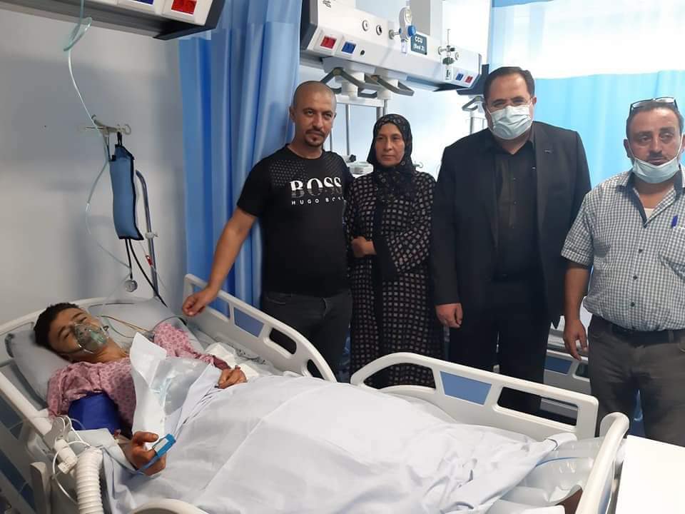 تلفزيون الفجر | علي سمودي– نجا الجريح أحمد ناجح درويش عصعوص (22 عاماً)، من الموت بأعجوبة، بعدما تعرض لقطع في شريان قدمه اليمنى، إثر إصابته بعيار ناري خلال انسحاب قوات الاحتلال من بلدة قباطية فجر أمس، والتي اقتحمتها 20 دورية عسكرية، قامت بحملات تمشيط وتفتيش ودهم في جبل الزكارنة.