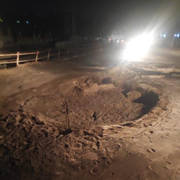 وأفادت البلدية أن الهبوط ناجم عن تسرب مياه من خط المياه المتضرر الذي تم صيانته بشكل أولي وعاجل عقب العدوان وتسربت المياه في التربة ما أدى لهبوط في الشارع.