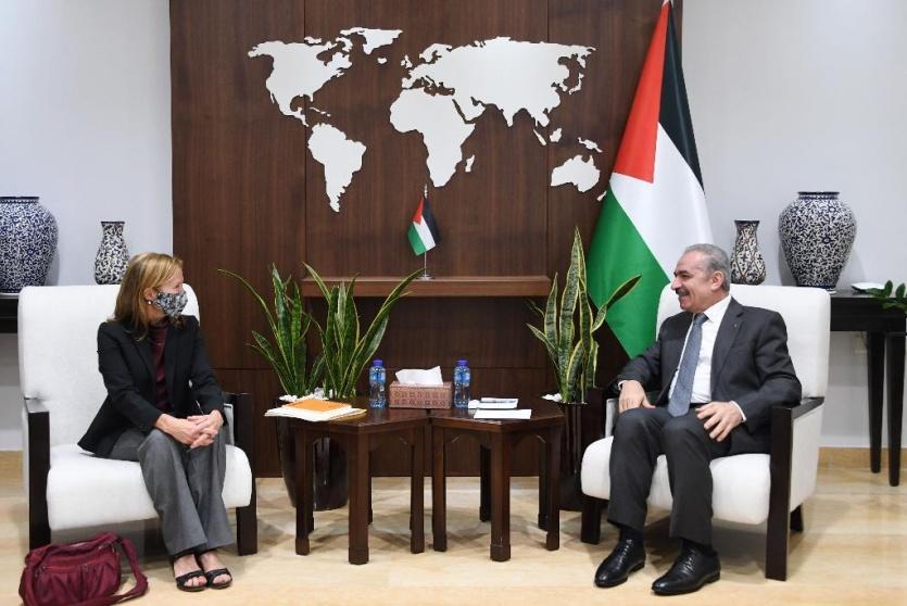 بحث رئيس الوزراء محمد اشتية، خلال لقائه مديرة بعثة الوكالة الأميركية للتنمية الدولية في الضفة الغربية وقطاع غزة (USAID) ألير غروبز، تعزيز التعاون وتنفيذ المشاريع التنموية.