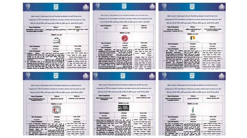 وصنفت سلطات الاحتلال 6 مؤسسات حقوقية فلسطينية كـ”منظمات إرهابية”. والمؤسّسات هي: “الضمير لرعاية الأسير وحقوق الإنسان” و”الحركة العالمية للدفاع عن الأطفال – فلسطين”، و”الحق” و”اتحاد لجان العمل الزراعي”، و”اتحاد لجان المرأة العربية”، و”مركز بيسان للبحوث والإنماء”.