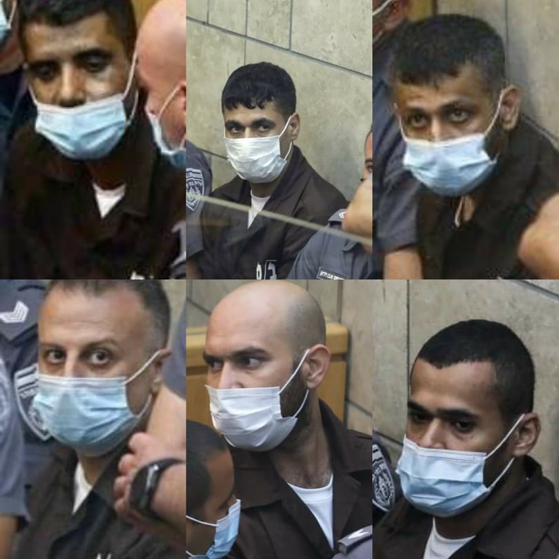 وجرت مداولات بشأن لائحة الاتهام التي قدمت ضد الأسرى الستة وهم: محمود عارضة (46 عامًا) من سكان عرابة قضاء جنين، يعقوب قادري (49 عاما) من سكان عرابة قضاء جنين، أيهم كممجي (35 عاما) من سكان كفردان، مناضل انفيعات (26 عاما) من سكان يعبد قضاء جنين، محمد عارضة (40 عاما) من سكان عرابة قضاء جنين وزكريا زبيدي (45 عاما) من سكان جنين.