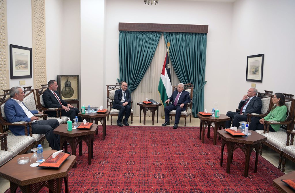وأطلع الغانم، السيد الرئيس، على سير العمل في سلطة الأراضي والمشاريع التي تعمل على تنفيذها للحفاظ على أراضي دولة فلسطين.