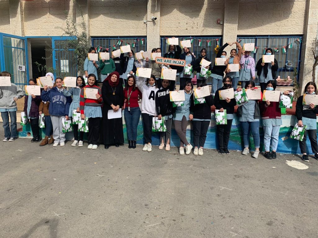 بنك القاهرة عمان وإنجاز فلسطين يختتمان ورشة عمل حول مشاريع ناجحة في مدرسة بنات فيصل الحسيني الأساسية المختلطة.
