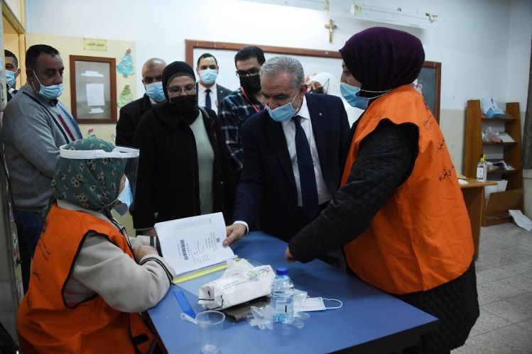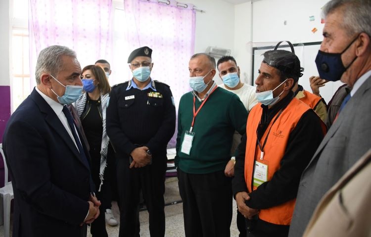 ورافق رئيس الوزراء، رئيس لجنة الانتخابات المركزية حنا ناصر، ومحافظ رام الله والبيرة ليلى غنام، ووزير الحكم المحلي مجدي الصالح، ومدير شرطة المحافظة العميد علاء شلبي.