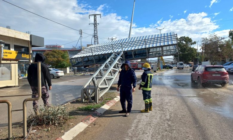 -إغلاق شارع بلال إبن رباح في منطقة البالوع بالبيرة بسبب إنهيار جزئي في الشارع. - إزالة لوحة إعلانية سقطت بسبب شدة الرياح على المدخل الرئيسي لمدينة جنين.