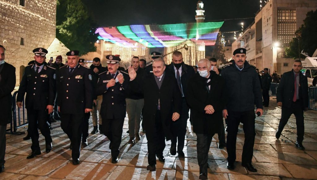 واستهل اشتية حديثه بالقول : “اليوم بيت لحم تحتفل بعيد الميلاد المجيد، وترسل رسالة للعالم أن هذه المدينة هي قبلة المسيحيين، وتؤكد أن شعبنا يريد السلام ويمد يده للسلام، السلام المبني على الحق والعدل والذي يعيد الحقوق لأصحابها، وينهي الاحتلال، وتقام دولتنا المستقلة”.