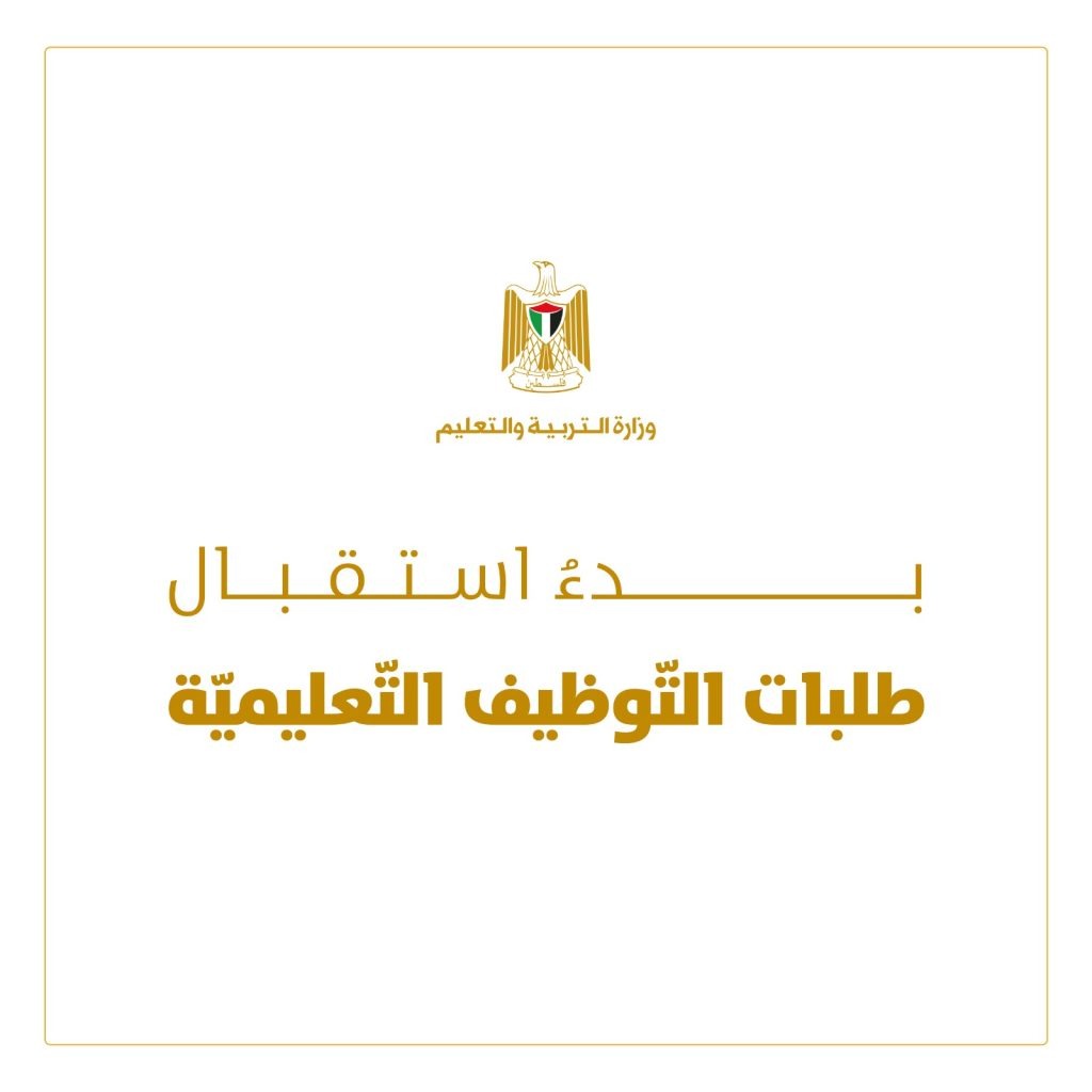 أعلنت وزارة التربية والتعليم عن استقبال طلبات التوظيف للوظائف التعليمية والمساندة والمهنية للعام الدراسي 2022/2023م اعتباراً من 2/ 1/ 2022م لغاية 1/ 2 / 2022م، ودعت الوزارة الراغبين بتقديم الطلبات لهذه الوظائف زيارة البوابة الإلكترونية لديوان الموظفين العامّ (www.gpc.pna.ps ).
