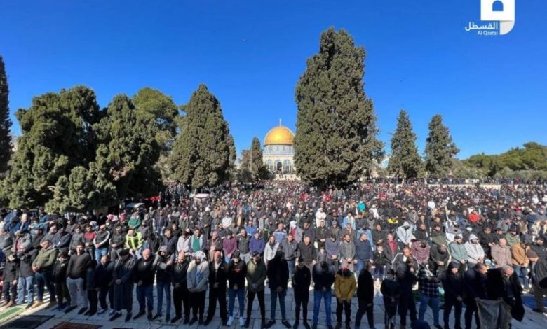 تلفزيون الفجر | أدى عشرات الآلاف صلاة الجمعة في المسجد الأقصى المبارك، رغم الإجراءات العسكرية المشددة التي فرضتها سلطات الاحتلال الإسرائيلي على أبواب ومداخل البلدة القديمة في القدس المحتلة.