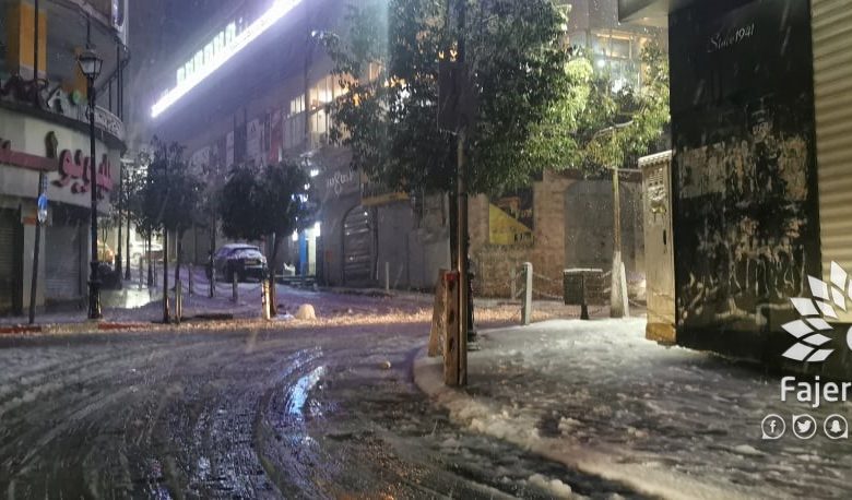 الطرق الداخلية في المدينة والبلدات التي سقطت بها الثلوج سالكه وتقوم طواقم الدفاع المدني والبلديات بفتحها
