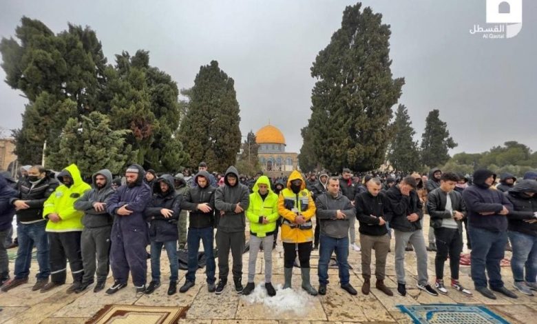 وشهد المسجد الأقصى احتشاد آلاف المواطنين من القدس والضفة الغربية وداخل أراضي عام 1948، لأداء الصلاة رغم الأجواء الباردة والماطرة، لإيصال رسالة للاحتلال برفض مخططاته التهويدية التي ينفذها في الأقصى، وللتأكيد على إسلاميته وضرورة شد الرحال إليه.