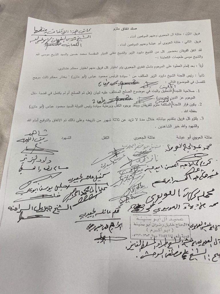 اتفاق صلح بين عائلتي الجعبري والعويوي