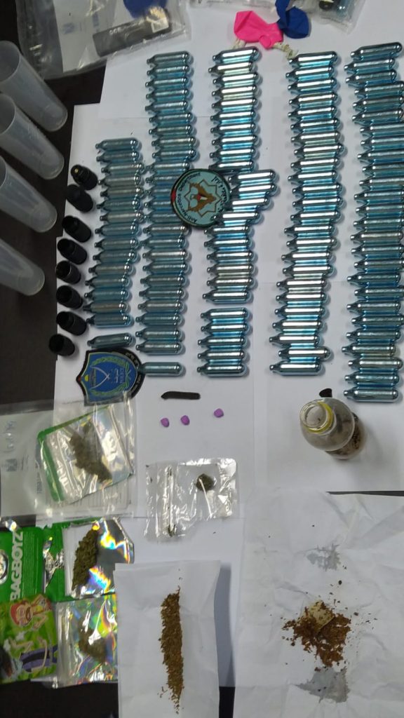 ضبطت الشرطة مساء الجمعة في محافظة أريحا والاغوار 119 قنينة يشتبه انها تحوي مادة من غاز الضحك المخدر بحوزة اثنين من المروجين للمواد المخدرة من خارج المحافظة.