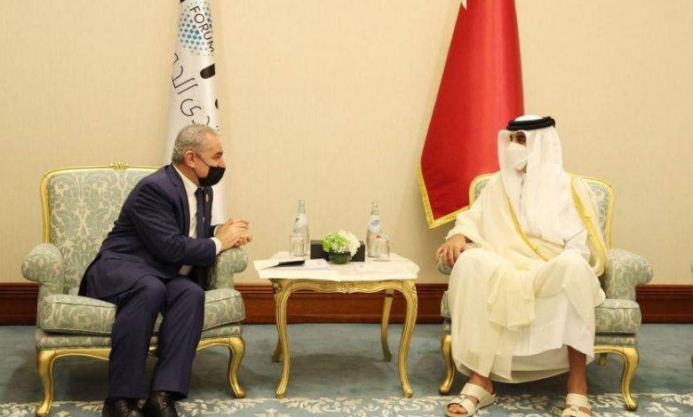 أطلع رئيس الوزراء محمد اشتية، أمير دولة قطر الشيخ تميم بن حمد آل ثاني اليوم السبت، على التحديات السياسية والاقتصادية، التي تمر بها القضية الفلسطينية.