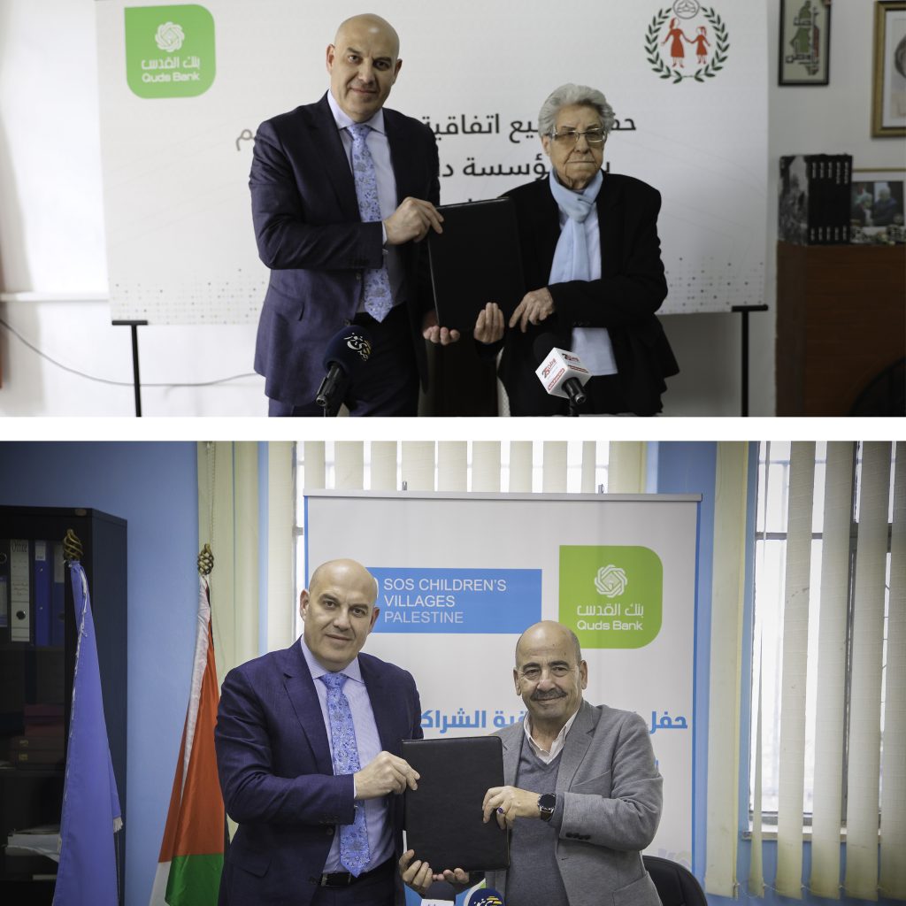 وجرى توقيع الاتفاقية الأولى بالمقر الرئيسي لمؤسسة دار الطفل العربي في مدينة القدس، حيث وقعها كل من صلاح هدمي الرئيس التنفيذي لـ بنك القدس وماهرة الدجاني رئيسة مؤسسة دار الطفل العربي كما تم توقيع الاتفاقية الثانية في مقر قرى الأطفال في مدينة بيت لحم ما بين الرئيس التنفيذي للبنك صلاح هدمي ومحمد الشلالدة المدير الوطني لقرى الأطفال، بحضور عدد من المدراء والمسؤولين في مؤسسة دار الطفل وقرى الاطفال وبنك القدس.