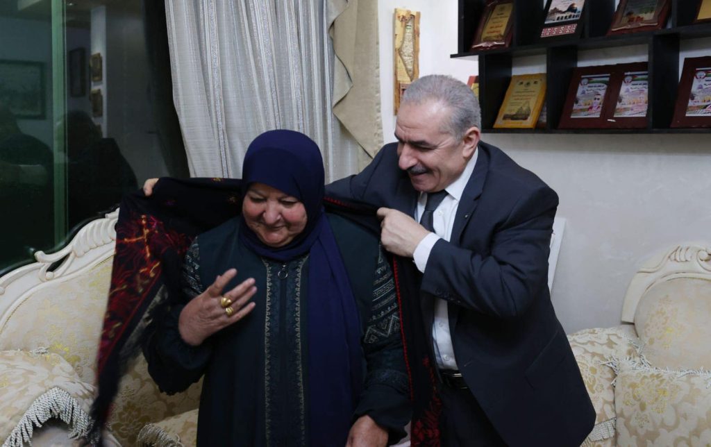 اشتية يشارك المناضلة أم ناصر أبو حميد الإفطار: قضية الاسرى ستبقى على سلم أولويات القيادة والحكومة
